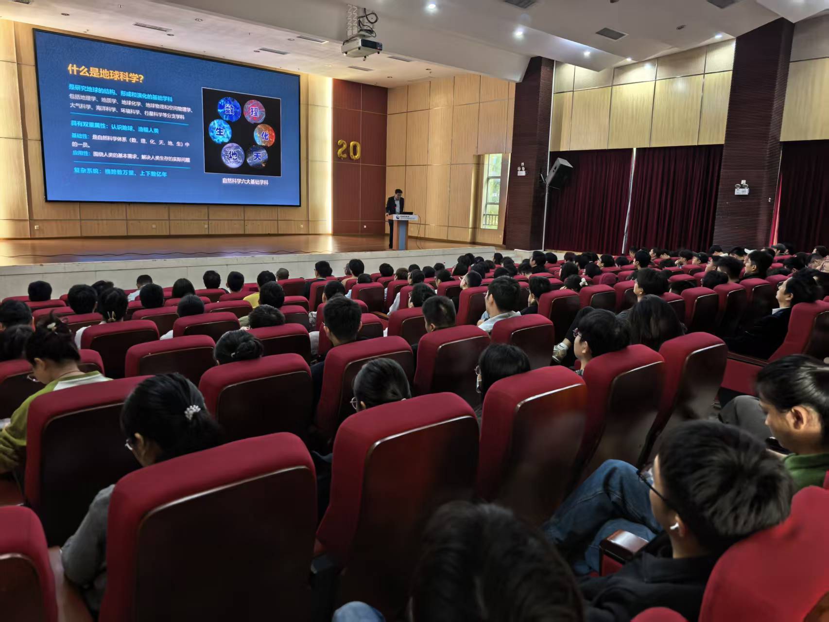 徐义刚院士带来《地球科学对人类文明的贡献》为主题的报告。针对地球这一“横跨数万里、上下数亿年”的复杂系统,从“没有地球科学就没有进化论”、“没有地质学就没有工业革命”、“改变了世界的地图和板块构造理论”、“气候变化研究改变世界经济发展范式”四个方面系统阐释了地球科学对人类文明历史贡献。从“颠覆认知”“创造财富”“治理规则”三重维度,总结了我国地学对世界/中国的贡献。他也与大家分享了一些思想感悟和未来地球科学的发展态势。最后,他以“旅行者1号”在64亿公里外拍摄的地球(“暗淡蓝点”)照片呼吁我们要珍惜和保护这颗蓝色的星球,并与38万公里外所的地球的照片作对比,感叹地球之美、地学之美。