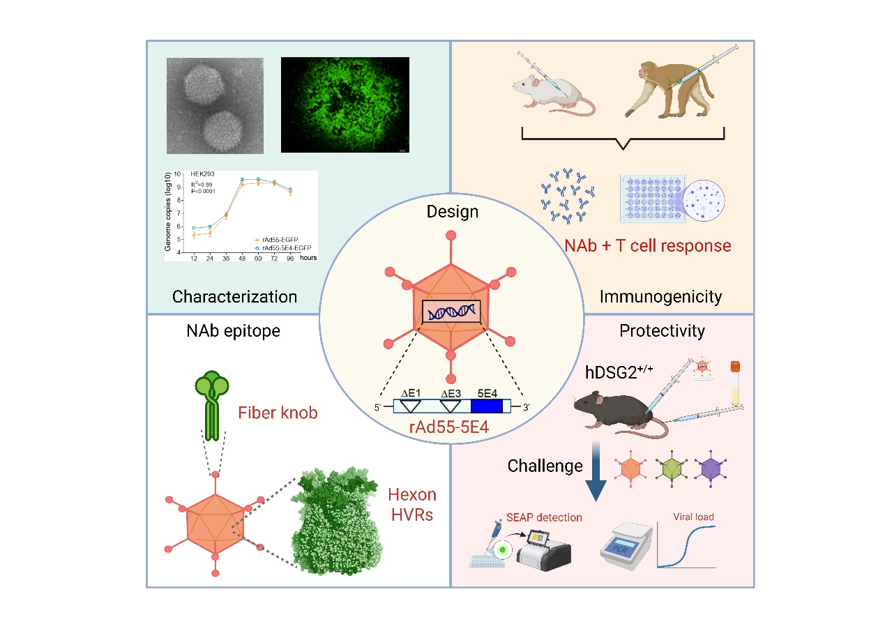 近日,中国科学院广州生物医药与健康研究院联合广州医科大学/呼吸疾病全国重点实验室、广州国家实验室等在国际知名期刊《Molecular Therapy》上发表题为“A replication-incompetent adenovirus type 55 vaccine induces broad and durable protective immunity against pathogenic adenoviruses”?的研究论文(https://doi.org/10.1016/j.ymthe.2025.12.027),报道了研发的一款复制缺陷型HAdV-55候选疫苗,可诱导针对呼吸道高致病性HAdV-55,HAdV-11和HAdV-14的长效?;ば悦庖哂Υ稹?/p>