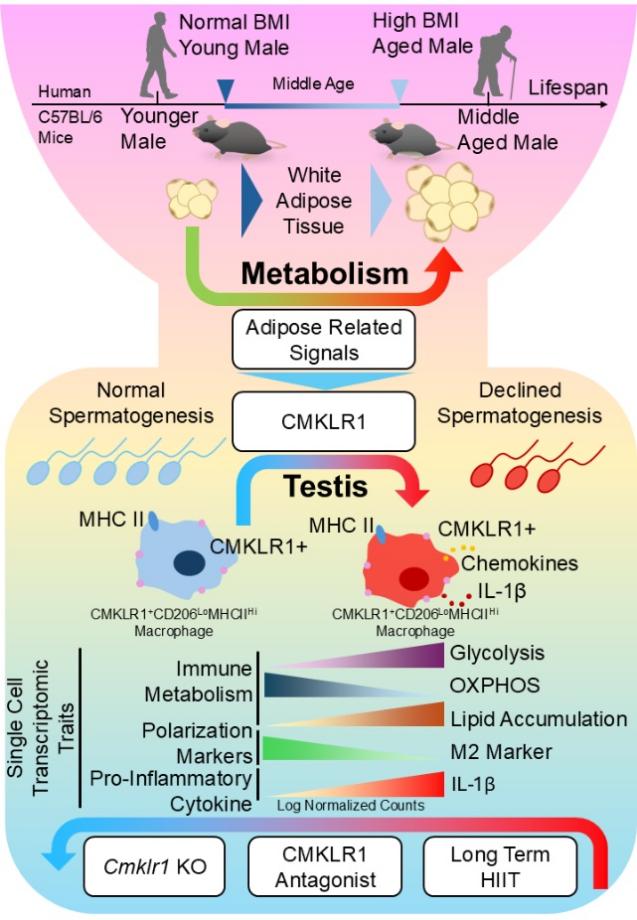 该研究系统揭示了中年期“脂肪组织–CMKLR1–睾丸巨噬细胞” 轴在性腺免疫衰老中的关键作用,为通过靶向代谢–免疫通路或生活方式干预延缓男性生殖衰老提供了重要理论依据和潜在实践方案。