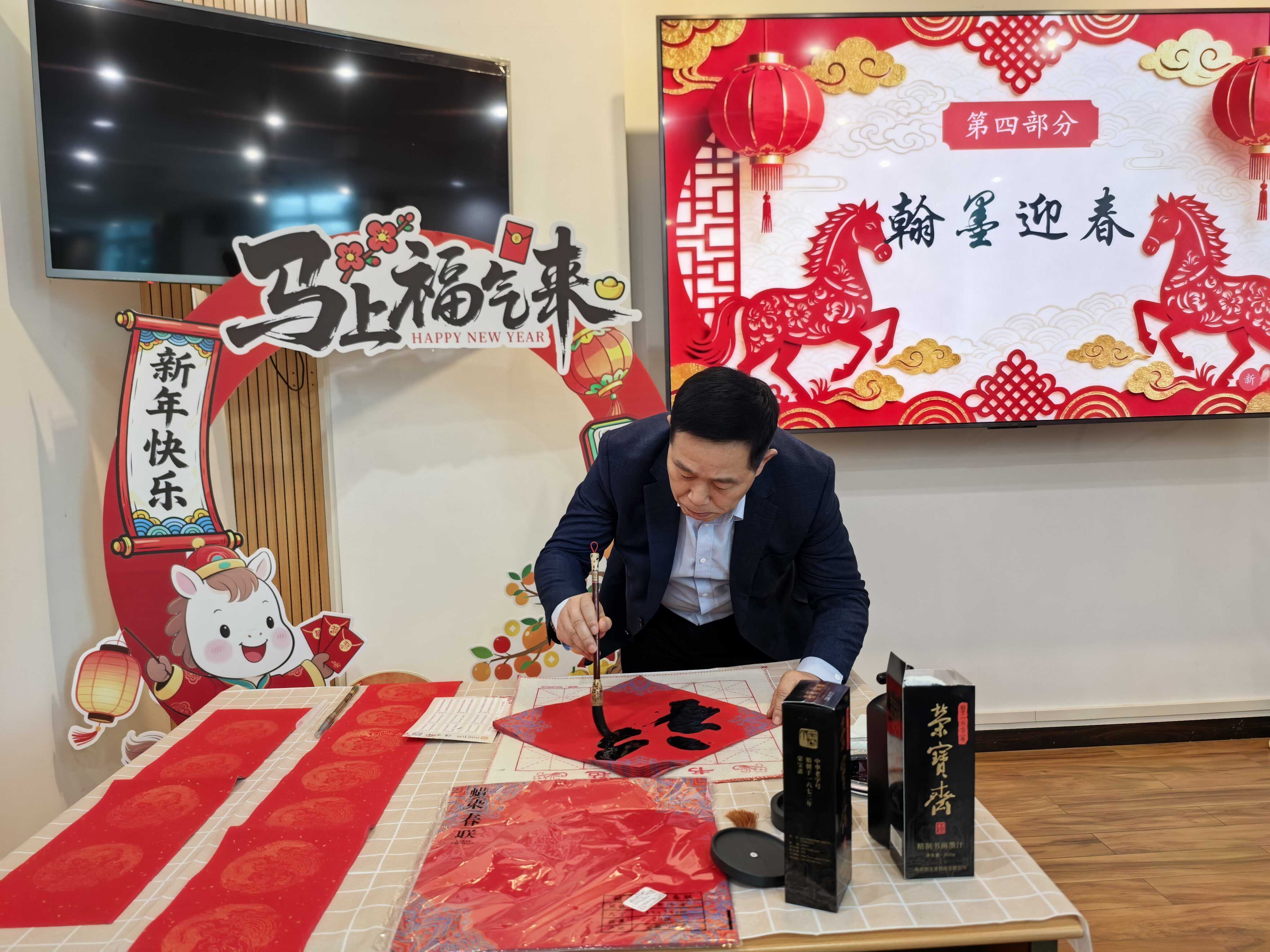 翰墨传情,福暖人心。随后的“翰墨迎春送福字”环节温情开启,黄从利现场挥毫泼墨,为职工书写福字与春联。一笔一划饱含新春祝福,红纸黑墨寄托对分院事业的美好期许。