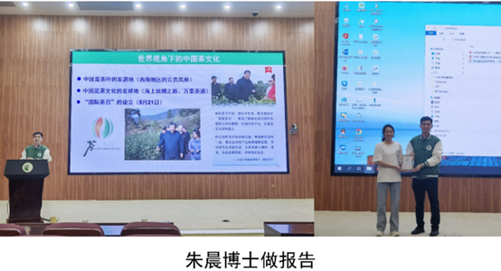 最后一位报告人是来自我园农生中心的朱晨博士后。他以从事茶学科研工作12年的经历为我们带来了“飘香世界的东方树叶——茶叶”的报告。他从本硕博10年茶学求学之路,到获得校优秀博士学位论文资助基金项目的“意外之喜”,再到华南植物园“Y-Tea Lab”继续探索中国茶奥秘。他首先为我们介绍了我国茶的历史、茶树利用方式演变、茶叶泡饮方式演变、茶叶传播、世界茶文化区块、我国茶区分布和茶产业、我国六大茶类和加工工艺等相关知识。接着,朱晨博士又为我们分享健康生活从一杯茶开始,依次讲解了茶的健康属性、养生作用以及如何科学饮茶。报告后,他与参会人员进行了问题互动,进一步加深了大家对于茶叶知识的印象。