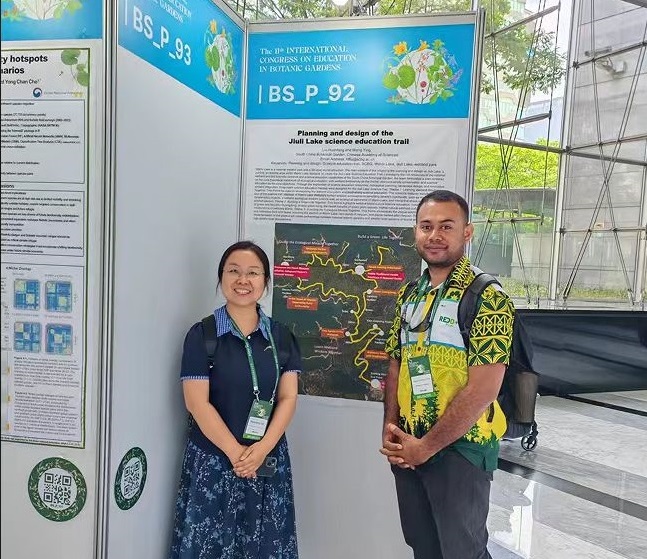 应ICEBG 2025组委会、BGCI秘书长Paul Smith 和韩国国家树木园主任Youngsuk Im的邀请,任海研究员在联合国教科文组织东亚办公室和韩国国家树木园联合组织的“植物园作为福祉和可持续发展的中心”的平行研讨会上作了“中国植物园与学校、社区伙伴共同开展可持续发展教育”的报告;王瑛研究员做了“国家植物园中的“植物+”科学传播模式探索”,宣传华南国家植物园的发展历史、科学传播现状与未来设想,介绍我园在“植物+”科学传播模式中的探索;鼎湖山树木园彭丽芳以"基于自然教育理念的校园教学植物园的建设、实施和使用-以肇庆新区中学小学为例",介绍校园教学植物园的理念、原则、实施和使用,并将校园教学植物园作为室外课堂将植物知识融合到校园日??翁弥校泄翁眯问胶涂蒲Э纬瘫涓锾峁┦导慰及咐?,这是鼎湖山树木园自然教育赋能社区发展的具体体现;科普旅游部副部长谭如冰以芳香植物的跨学科实践为主题,展示了我园依托科学种植科技劳动教育项目,通过“科学种植”-“植想空间”-“拾香计划”构建政府-科研-社会多元协作案例,使科学知识以更生动的形式触达公众,助力城市绿色高质量发展;刘焕芳博士通过墙报"九里湖科普教育径的规划与设计"展示了我园立足国家级湿地的丰富资源,依靠我园科研和科普力量,设计打造万绿湖景区九里湖科普教育径,推动地方高质量发展,助力地方打造绿美广东生态建设样板工程的案例。