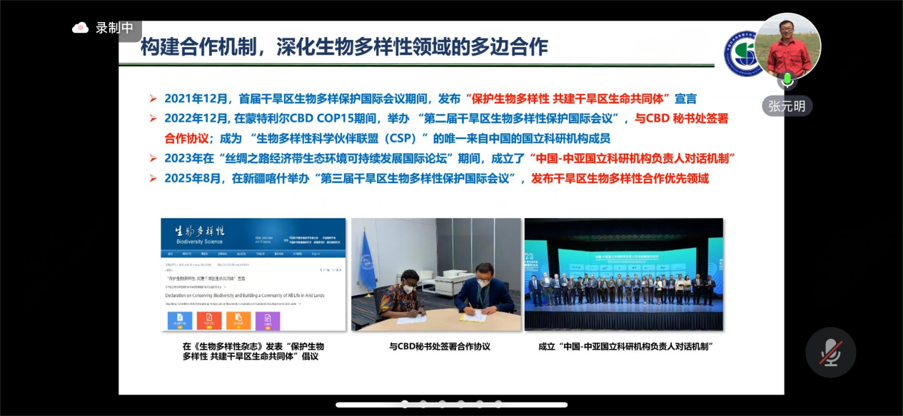 中国科学院新疆生态与地理研究所所长张元明研究员在报告中系统阐述了干旱区生物多样性保护所面临的多重挑战与关键进展。他指出,干旱区生态系统具有独特的脆弱性与不可替代性。为此,我国正积极填补数据与科研空白,推动区域性?;げ呗杂肴虮曜忌疃刃?,为兑现“昆蒙框架”贡献干旱区智慧与方案。